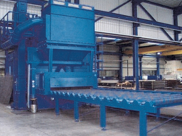 常規鋼板預處理拋丸清理機包含:鋼板拋丸機處理線、噴漆烘干設備等幾部分組成,采用輥道輸送,根據鋼板寬幅定制拋丸器排布,其中我公司在拋丸設備的開發過程中總結了國內國家設備用戶使用情況,針對鋼丸的回收部分,特別加裝刮板及滾掃,鋼丸回收率高,損耗低。 此類非標設備的開發對企業的研發能力要求較高,同時也非常考驗企業的生產能力,由于大部分工作需在客戶現場完成組裝,因此前期的生產精度要求非常高,若偏差大,客戶現場組裝過程非常麻煩,因此工廠對此類設備的生產經驗尤為重要。前期跟客戶溝通場地安裝等問題,并根據客戶要求出具地基圖紙,后續生產中,板材的裁切、焊接、零部件的拼裝應在經驗豐富的生產工人手中實現。確?蛻衄F場的0誤差。 鋼板預處理拋丸清理設備是大型船廠、鋼結構廠家的必備設備,設備自動化程度高,生產量大。